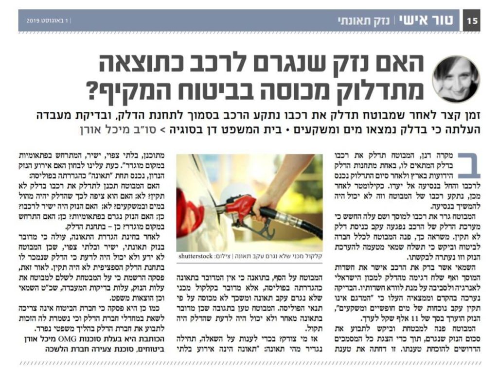 האם נזק שנגרם לרכב כתוצאה מתדלוק מכוסה בביטוח המקיף?